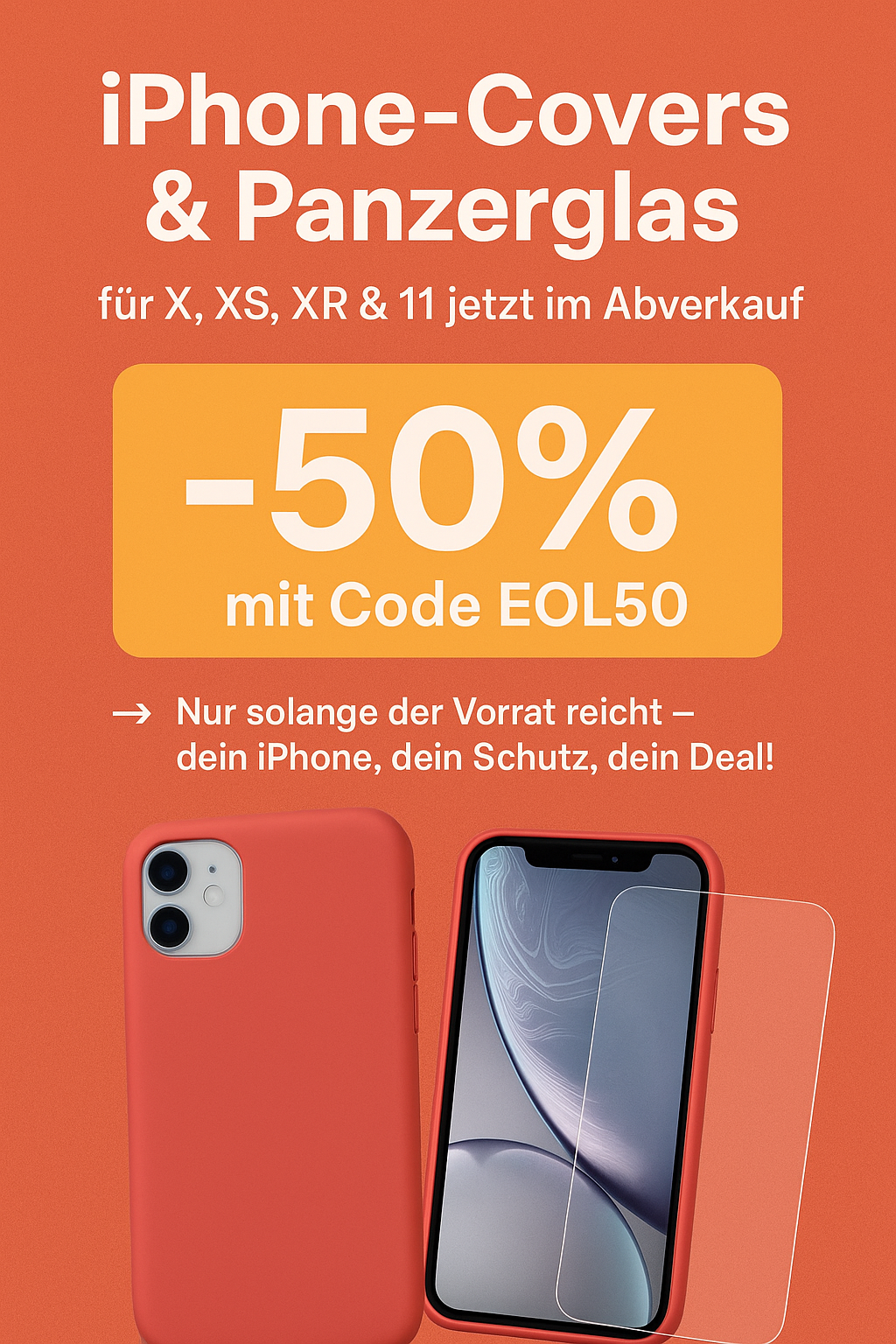 Auch unsere Lagerstände gehen zur Neige, daher müssen sämtliche Artikel für ältere iPhones raus. Mit dem Code EOL50 gibt es auf unsere Wahnsinnspreise nochmals 50% Rabatt in den Kategorien iPhone x/xs/xr und 11